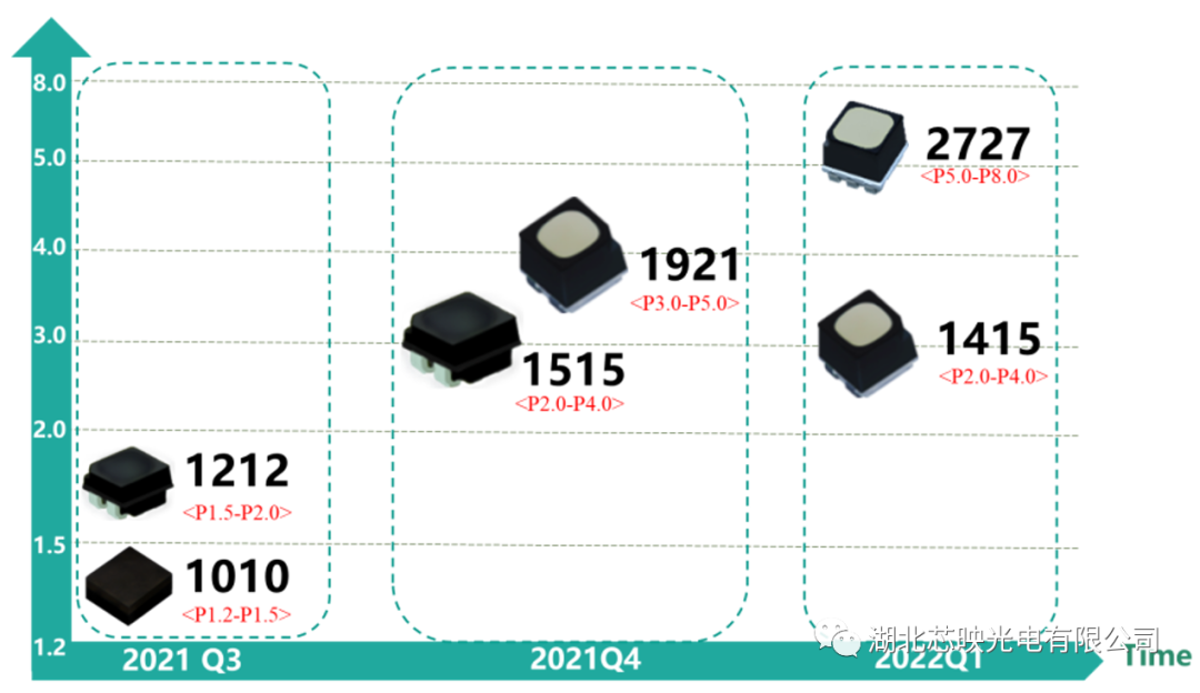 坚持以市场需求为主导,以解决客户痛点为原则。在常规显示市场,我们立志做RGB器件的“超市”,你要的我们都有,满足客户对产品全方面的诉求,做到量大质优。产品将先立足小间距、户内外产品并抓,迅速推出1010、1212、1515、1921等成熟产品,加速产能上量,做成熟产品的增量,并将在2021年12月底前将形成6000KK/月产能。同时,随着基建快速落成,项目将在2022年Q1进入快速发展期,通过不断投入,将在2024年Q4形成50000KK/月产能;