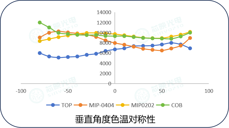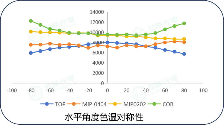 此外,得益于真Micro LED芯片无衬底设计,芯片排布平整度高,无论是水平还是垂直角度,色温波动小,亮度与色温的对称性都极佳。