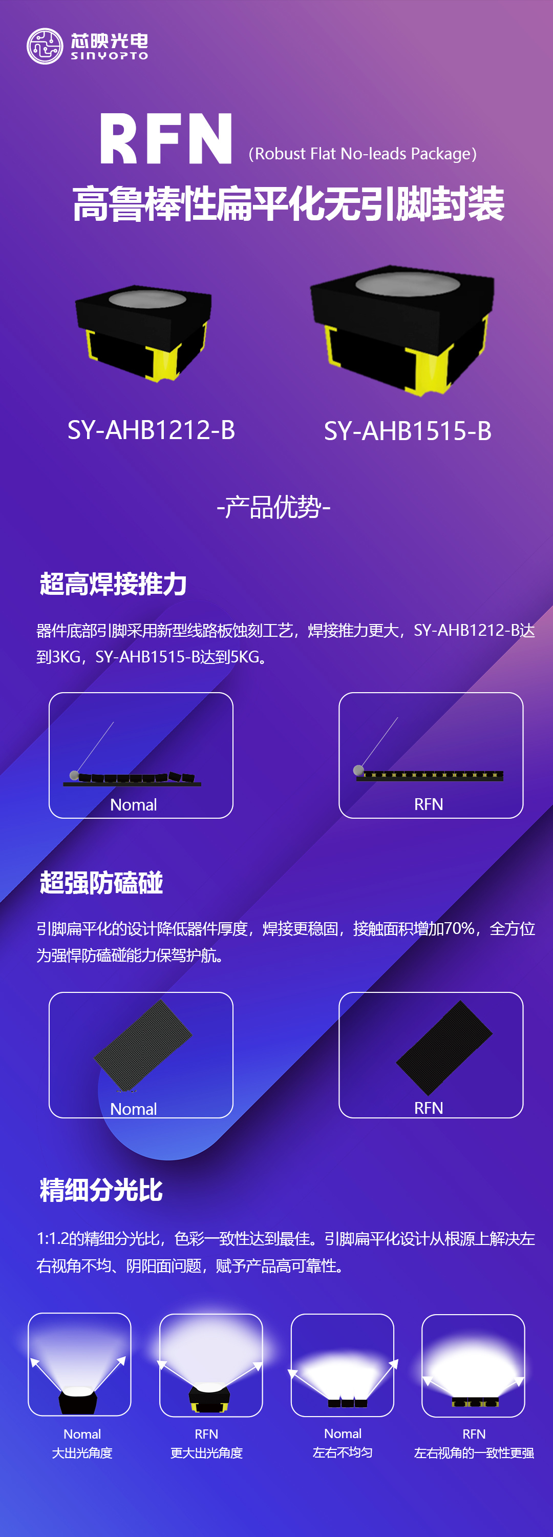 这款灯珠采用了革新的RFN技术,具备超高焊接强度,色彩一致性和色温稳定性达到最佳,同时在平整度和色彩精确度方面表现出色,使得每一帧画面都清晰、细腻、逼真。