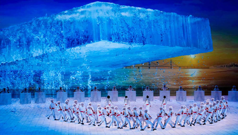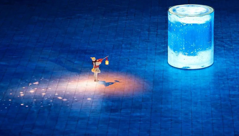 亚冬会开幕式分为三个篇章,以‘冰灯启梦’开篇,讲述一个小女孩的冰雪梦想之旅,串联起整场演出。通过虚拟增强现实、裸眼3D、数字AI等前沿科技,融合立面屏幕和数字地屏,构建全景沉浸式空间。