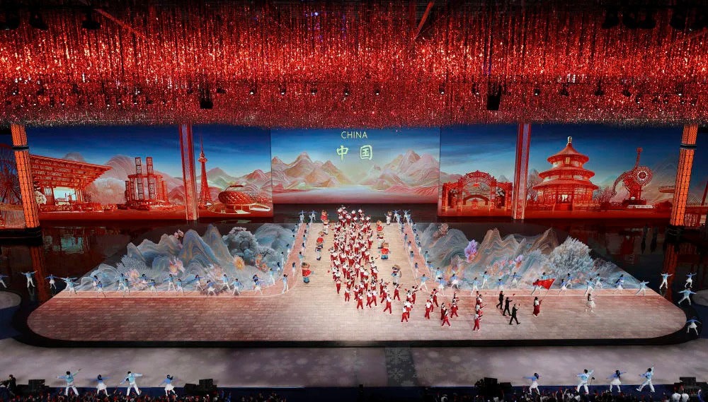 开幕式主屏采用光祥科技4000㎡DN系列显示屏,大屏核心显示器件由芯映光电提供,近2亿6千万颗灯珠极大提升了画面细节表现和视觉震撼感。
