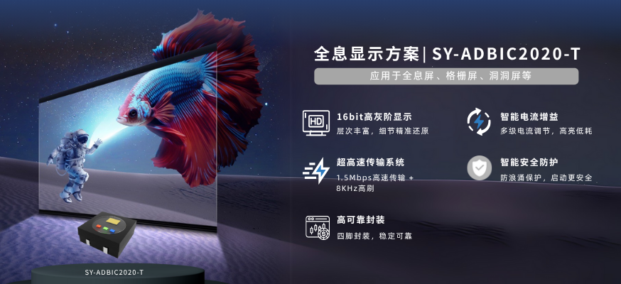本次展会,芯映光电正式发布面向全息、格栅、洞洞屏等创新场景的新品IC灯珠——SY-ADBIC2020-T。