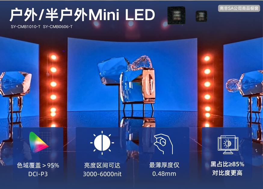 器件厚度仅0.48mm,亮度覆盖3000–6000nit,适用于高亮橱窗屏、地砖屏、广告灯箱、XR拍摄等;
